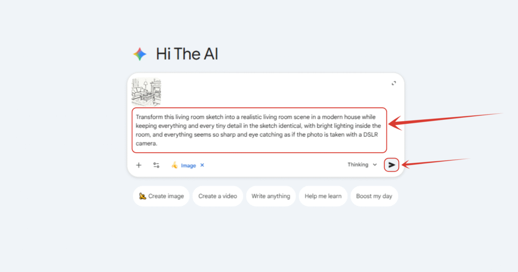 You can use AI tools like Google Gemini (Nano Banana Pro). Just upload a photo of your drawing and ask the AI to “turn this sketch into a realistic image.”