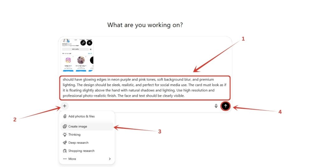 Go to ChatGPT, upload your Instagram profile screenshot and the prompt given in this step by step tutorial, and that’s it. After few seconds, you will have your own glowing Instagram handle image.