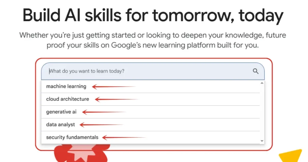 Like this, you can select any course from the list Google is offering such as Machine Learning, Cloud Architecture, Generative AI, Data Analyst, & Security Fundamentals, learn it in your convenient time, complete the course, and get a batch of the course from Google.