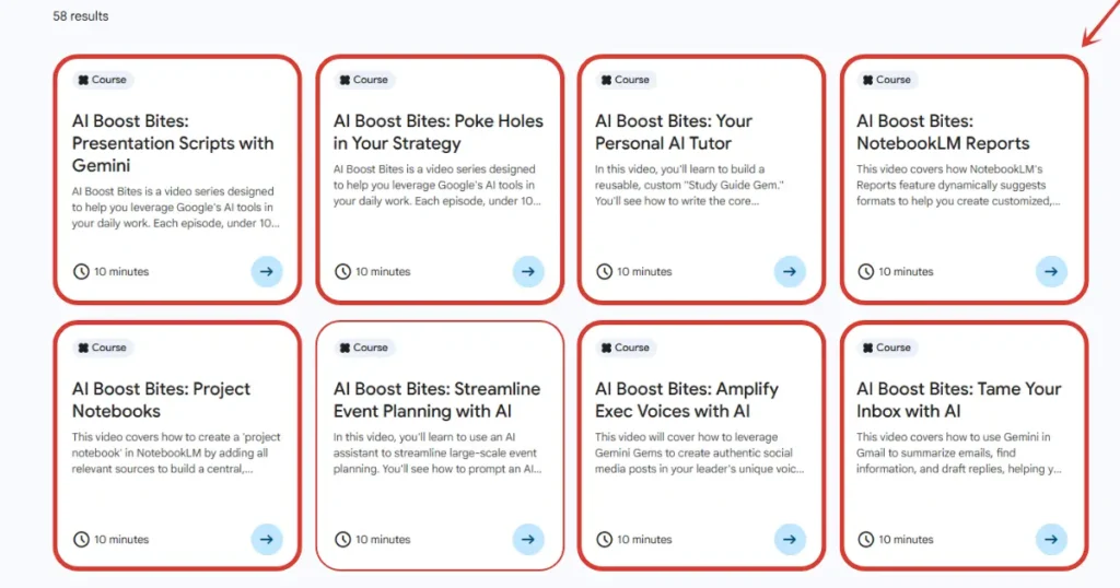 3. For example, I will click on AI Boost Bites and land on this page where I found many short and quick courses to go through with.